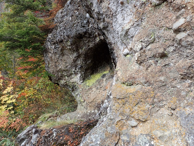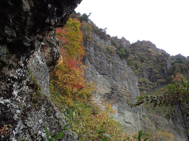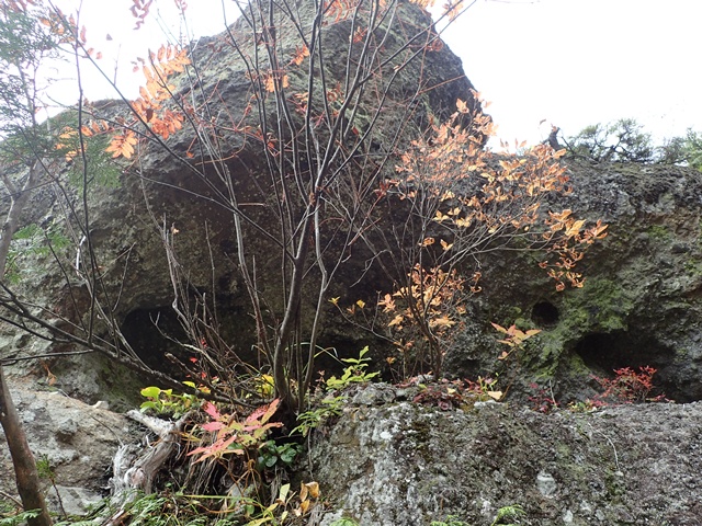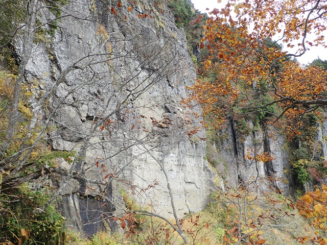 東窟から東側の岩壁を再び。紅葉と岩が調和している。