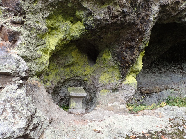 北側にある窟が東窟。石祠があった。「昭和十六年 東京市 松下〇〇」と刻まれていた。