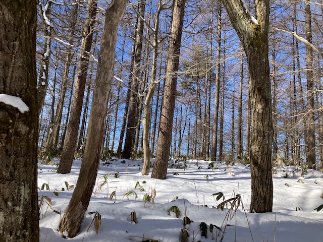 もうちょっと頑張っちゃお!と先に進む。この先積雪は幾分少なくなった。南斜面はすっかり雪が消えていた。