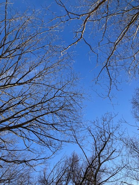 約10分で鏡台山山頂に到着した。もちろん誰もいないし、人の足跡は全くなかった。動物たちの足跡が続いていて、それだけで胸が弾む。