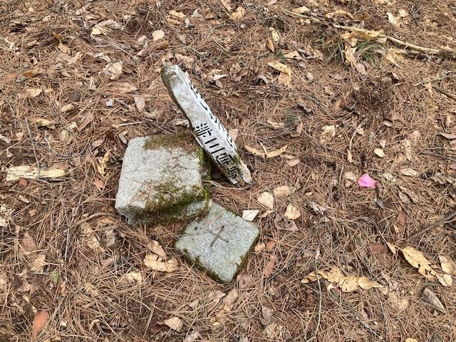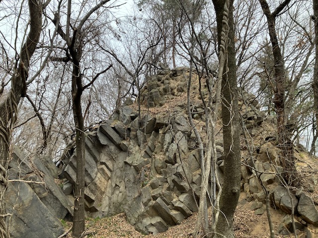 飯綱神社から東に向かい尾根に取り付く。何とそこは石切り場になっていて、かつて切り出した石の残骸が残っていた。