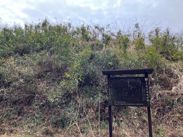 尾根を忠実に登って行ったら遊歩道に出て、越将軍塚があった。長野市教育委員会が設置してある説明版は、文字が消えかかっていて謂れが分からなかった。
