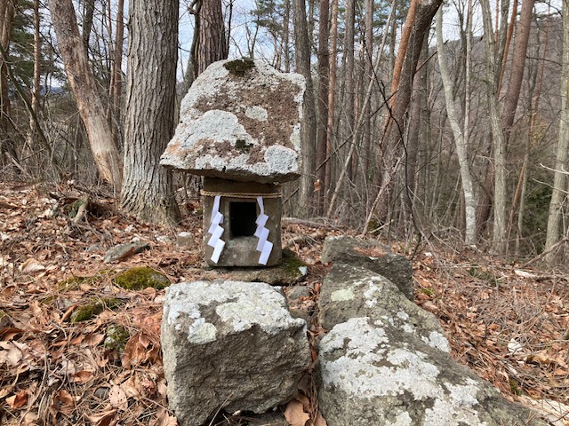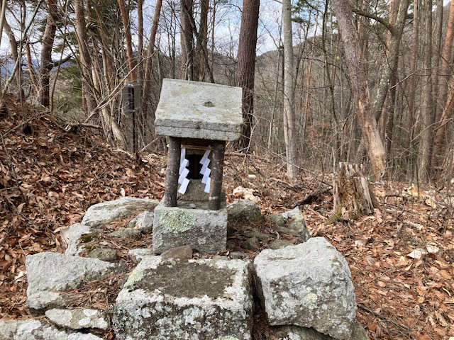 三角点近くにもう一つ祠が。ここにも紙垂が巻かれていた。神聖な場所なんだ。