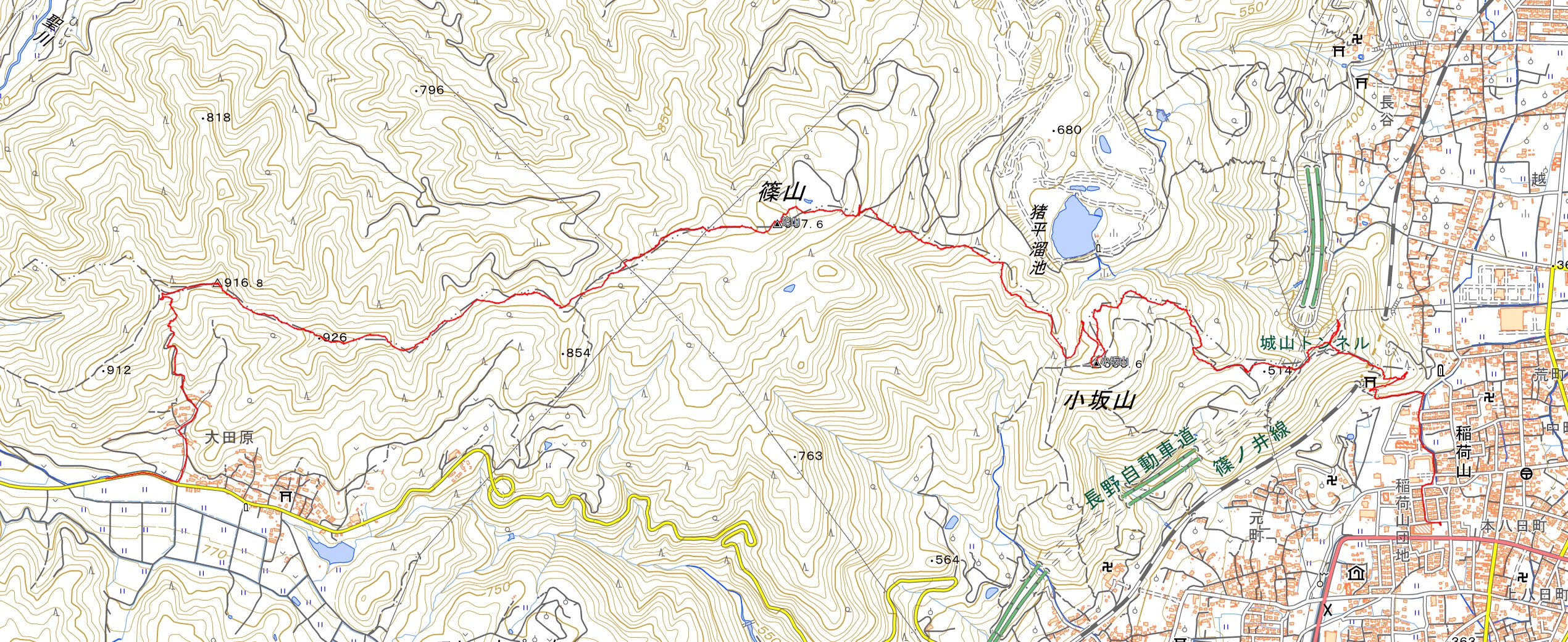 今回も里山。里山でもバリエーションルートで歩く山だ。稲荷山から入って小坂山経由で篠山から千曲市の大田原へ降りるルート。一部遊歩道があったりしたが、ほとんど長野市と千曲市の教会の稜線を歩きとおした。