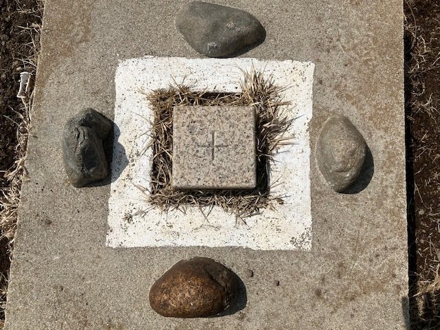 三等三角点。とてもきれいに三角点が設置されている。点名・俵山。