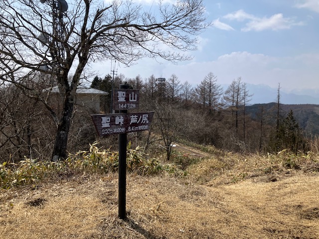聖山山頂に続く尾根が境界になっている。ところどころ雪が残っていたが苦労することなく、尾根から20分ぐらいで山頂に到着した。