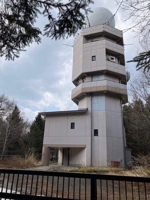 お天気レーダーの施設。監視カメラが取り付けてあった。