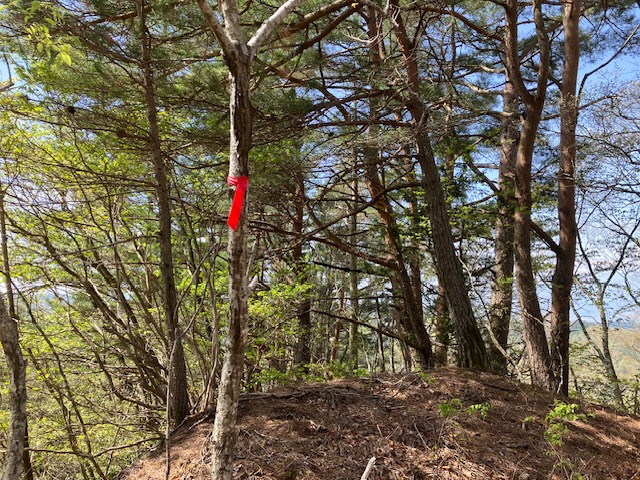 一つ目のピークに登り上げたらそこは横谷城跡だった。いつもの儀式。