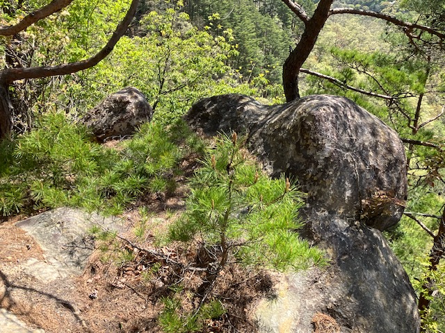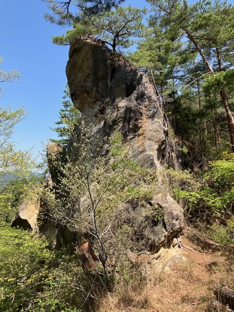 筑北に面白い山を見つけた。地図では岩洲公園となっているが、実際には山歩きに慣れた人でないとハードルが高い公園(?)だ。ところどころに岩稜があり、それぞれのネーミングも付けられている。そこだけではつまらないから、バリルートで先に足を延ばしてみた。