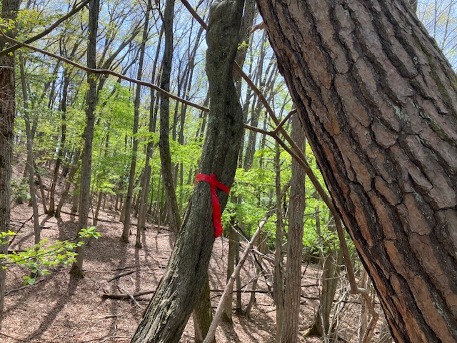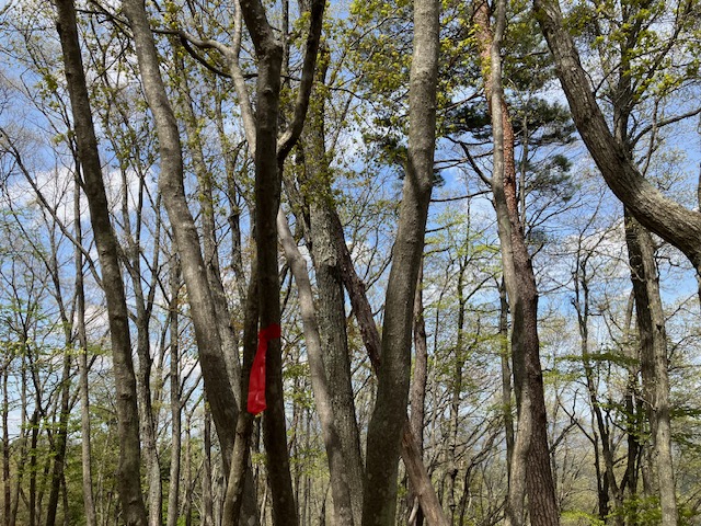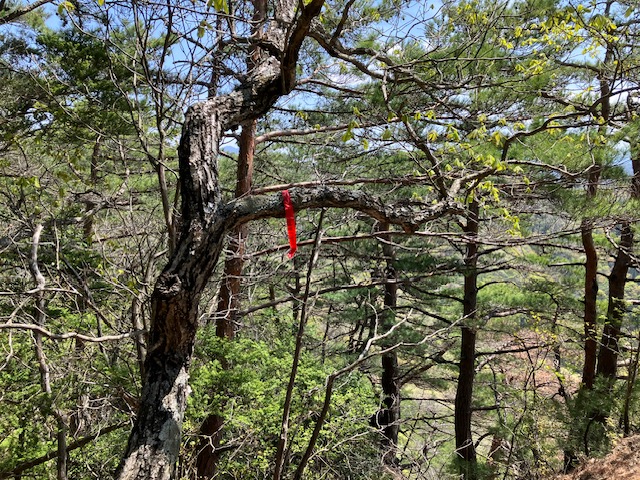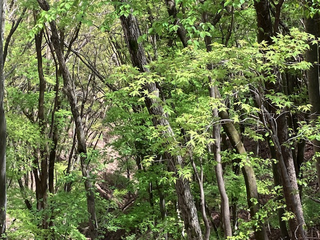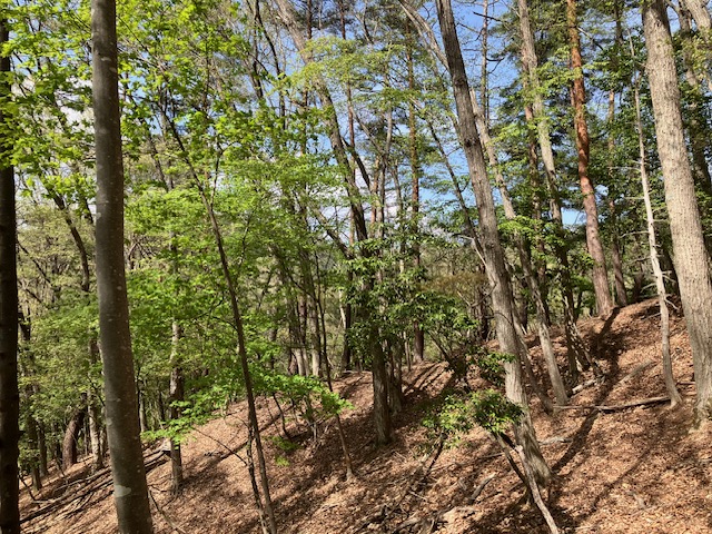 ならばもう少し先に足を延ばして、適当なところから斜面を下ることにした。里山とはいえ、こうした山歩きができるのが楽しいのだ。地図読みが面白い。