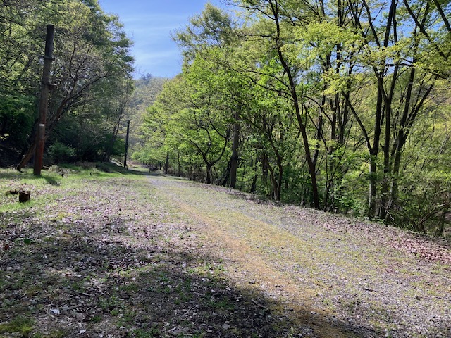やがて民家がある集落に到着。その集落を抜けて国道403号線をまたぎ篠ノ井線廃線道に出た。この道は明科まで続いているらしい。